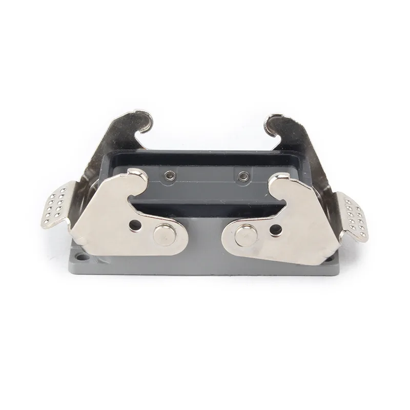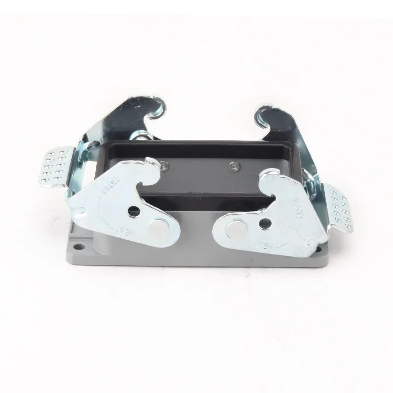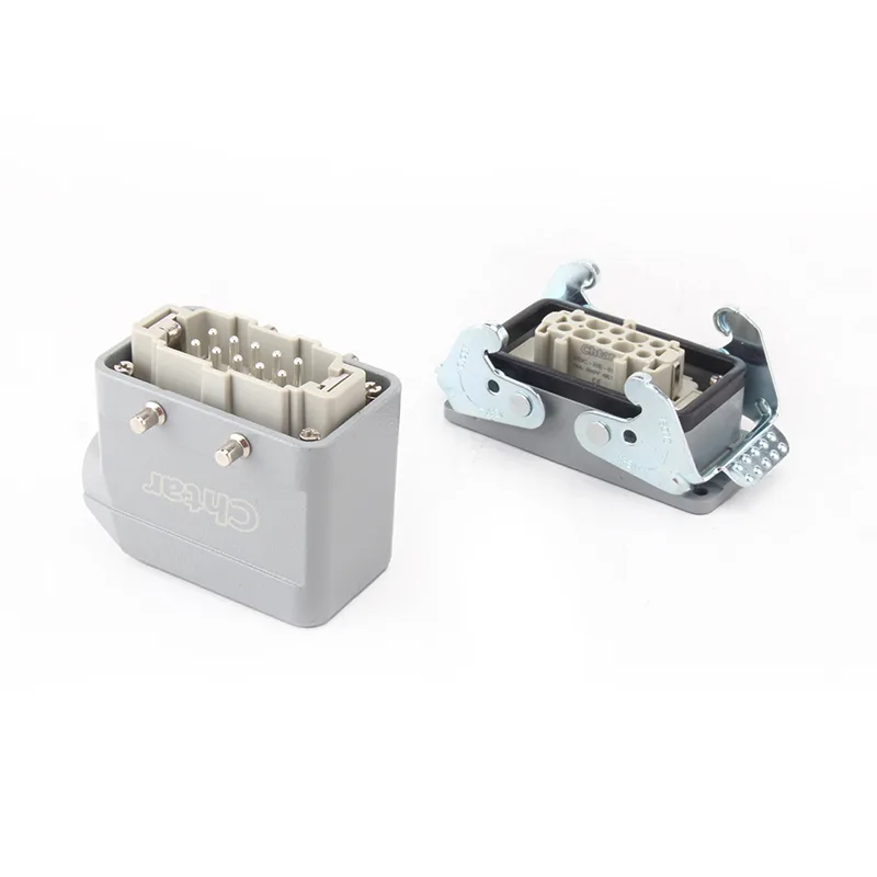 Diese CHTAR 10-poligen AG-Hochleistungssteckverbinder sind nach einem modularen Prinzip konzipiert. Es besteht aus einem Buchsengehäuse, das verschiedene Einsatzkonfigurationen mit 10-stelligen Buchsen- oder Steckerkontakten aufnehmen kann. Es besteht aus einem doppelten Verriegelungshebel zum Schutz der inneren Anschlüsse.