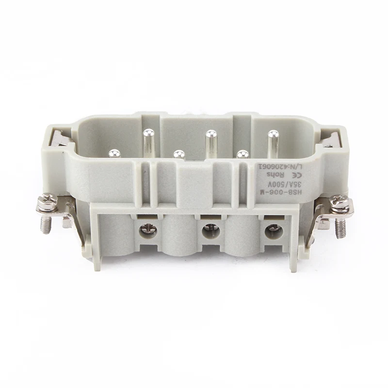HSB-006-M HSB-Hochleistungssteckverbinder funktionieren bei einem Strom von 35 A. Der Hochleistungssteckverbinder mit 0,35 A 6-poligem Einsatz hat 6 Stifte oder doppelte 12 Stifte für den Kontakt mit Drähten. Es eignet sich für unterschiedliche Arbeitsbedingungen und wird häufig in der automatischen Industrie und bei der Verkabelung von Maschinen eingesetzt.