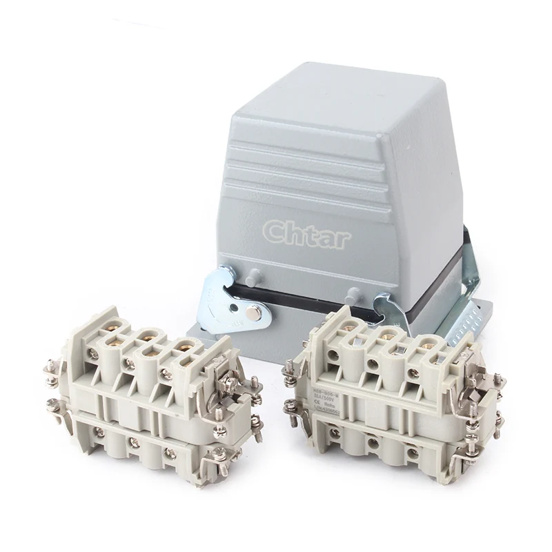 Dieser hochwertige CHTAR-Hochleistungssteckverbinder mit 35 A und 6-poligem Einsatz passt zum 35 A-Hochleistungssteckverbindergehäuse H16B-TG oder H16B-TS. Es besteht aus hochfestem PC-Material und ist mit 6 Pins in einem H16B-Aluminiumgehäuse montiert. Es können auch 12 Pins vorhanden sein, also doppelt so viele wie bei H32B-TG oder H32B-TS.