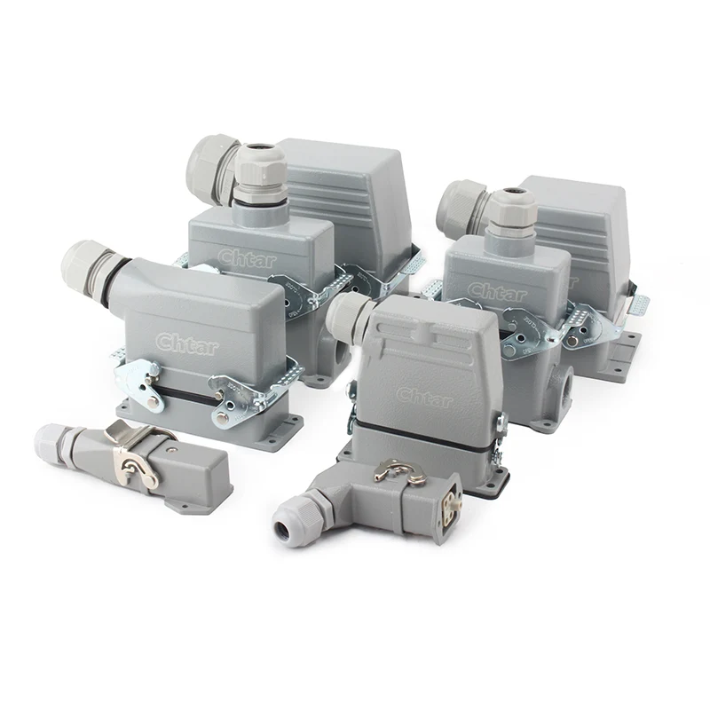 Diese hochwertigen 48-poligen AG-Hochleistungssteckverbinder von CHTAR funktionieren mit zwei Teilen HE-024-M oder HE-024-F, um daraus einen 48-poligen Stecker zu machen. Es kann auch mit anderen Hochleistungssteckverbinder-Einsatzteilen verwendet werden. Es handelt sich um ein unteres Gehäuse mit robusten Steckverbindern. Es wird mit H48B-TS oder H48B-TG als ein Gehäusesatz kombiniert. Normalerweise wird mit PG29 gearbeitet.