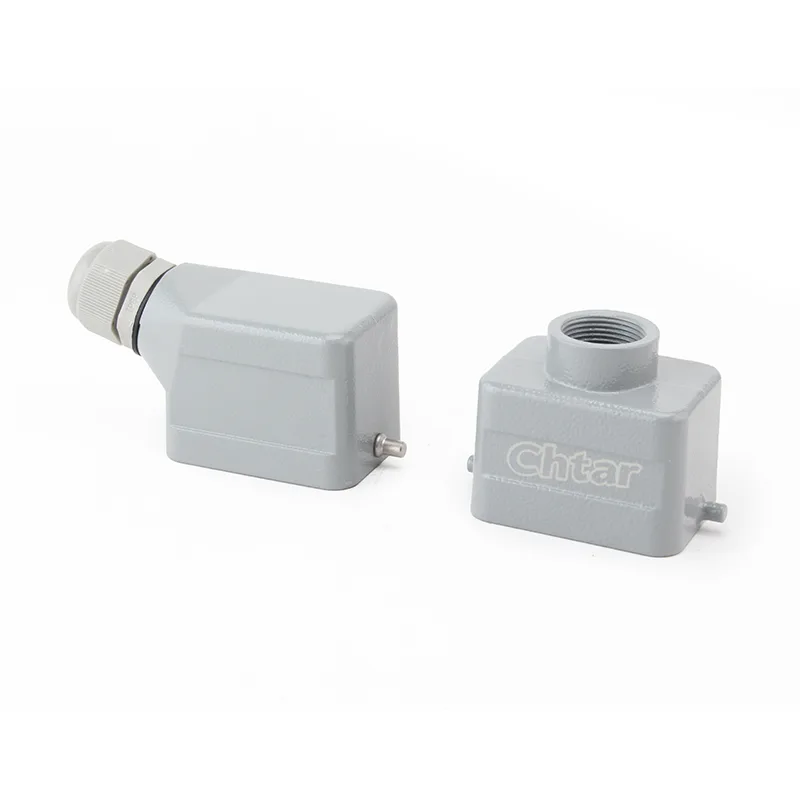 Diese CHTAR 6-poligen TS-Hochleistungssteckverbinder werden häufig mit HE HD HEE und HDD verwendet. Es handelt sich um ein Steckergehäuse mit seitlichem Eingang. Aus gestalterischer Sicht besteht es aus Aluminium und einem Einzeleimer. Benutzerfreundlicher Hochleistungs-Klemmenblocktyp.