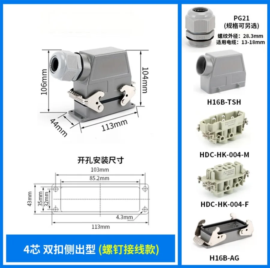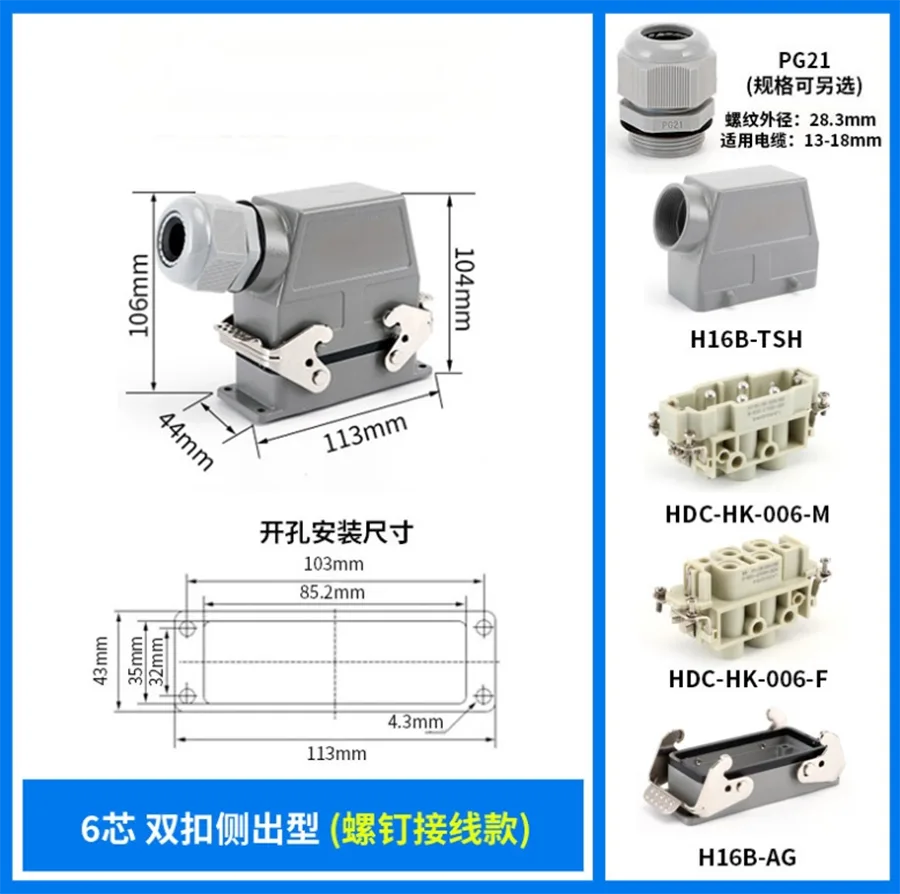 Der robuste 80-A-4+2-Pin-Einsatzsteckverbinder ist aus H16B-TSH-Aluminium gefertigt. Das Gehäuse des robusten Steckverbinders besteht aus H16B-TSH. Es besteht aus robustem PC-Material und versilbertem Messing. CHTAR-Messingstifte sind mit Silber plattiert, was für eine gute Qualität und eine bessere elektrische Leitfähigkeit sorgt. Es enthält Dichtungsgummi, um eine gute Wasserdichtigkeit zu gewährleisten.