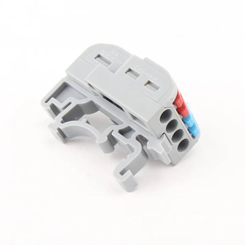 CHTAR 4mm2Die DIN-Schienen-Spleißdraht-Schnellverbinder mit mehreren Eingängen und mehreren Ausgängen bestehen aus PC-Gehäusematerial der Güteklasse UL94 V0, das leitfähige Material besteht aus verzinntem T2-Kupfer und die Feder besteht aus S301. Es kann mit 0,5–2,5 mm verbunden werden2weiche Drähte und 0,5-4 mm2Starre Drähte, es bot eine breite Auswahl an Drahtgrößen für die Arbeit. Es kann gut mit 2 Drähten ein- und 4 Drähten angeschlossen werden, also zwei separaten Kabelanschlüssen. Wir können nach Wahl des Kunden unterschiedliche Farben oder Gehäuse und Hebel herstellen. Mit den Spleißdraht-Schnellverbindern können Drähte leicht entfernt und wieder angeschlossen werden.