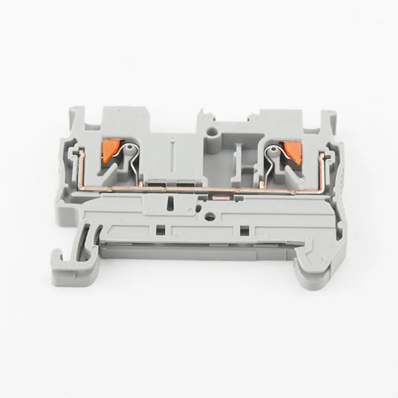 Dieser CHTAR PT 2.5 DIN-Schienen-Durchgangsklemmenblock wird mit 2,5-mm2-Drähten und Durchführungstyp angeschlossen. Für die Installation dieser Serie schienenmontierter Reihenklemmen ist kein Werkzeug erforderlich. Einadrige Drähte können direkt eingeführt werden, wobei die federbelasteten Kontakte den Draht ergreifen und ihn mit der leitenden Platte verbinden, um einen elektrischen Kontakt herzustellen.