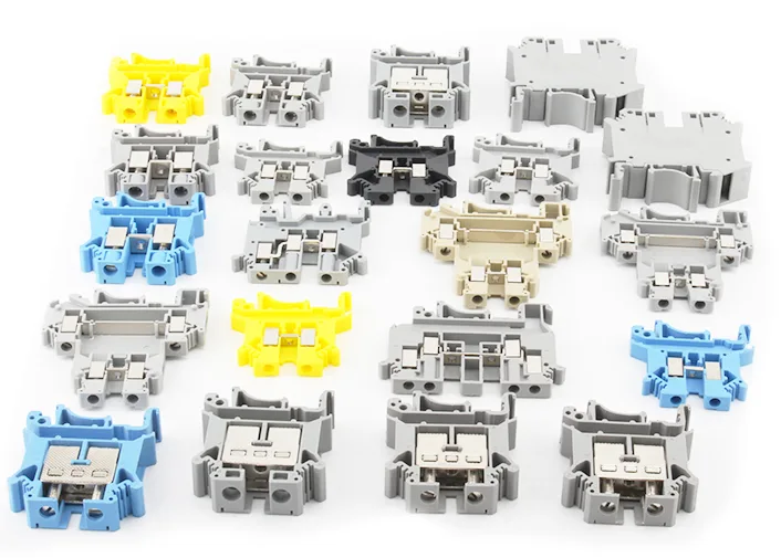 Unsere Fabrik bietet OEM-Gehäusefarbanpassungen für verschiedene Positionen und Funktionen an. Die neuesten DIN-Schienen-Schraubklemmenblöcke sind in Standardfarben wie Grau, Gelb, Rot, Schwarz, Grün, Braun und Orange erhältlich, um den unterschiedlichen Marktanforderungen gerecht zu werden.