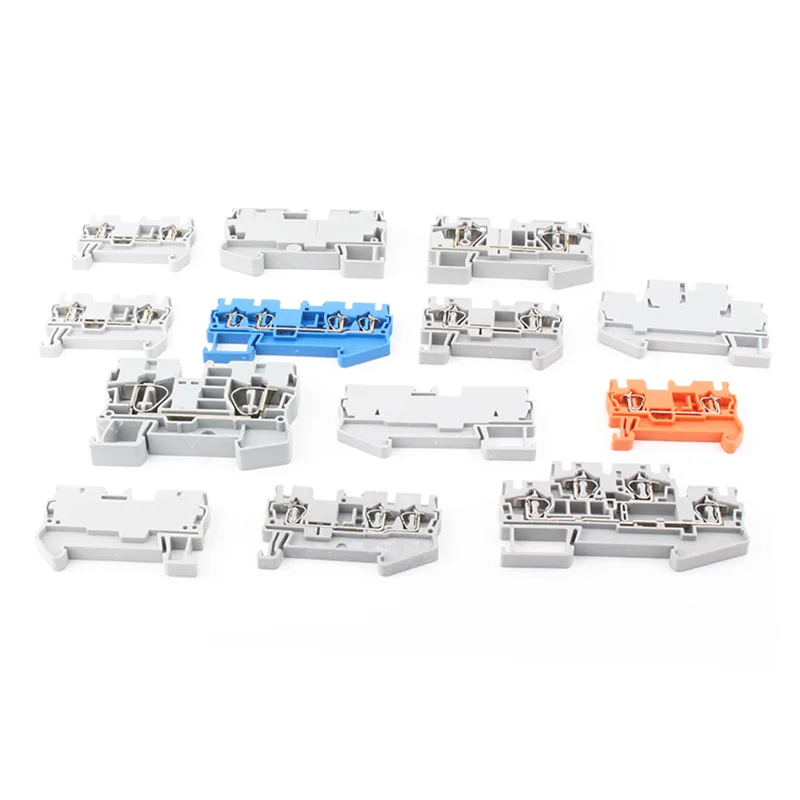 Darüber hinaus ist sein Design nachsichtig. Der TWIN-DIN-Schienenklemmenblock ST2.5 mit Feder nimmt in derselben Klemme eine Vielzahl von Leitergrößen auf und ist so konstruiert, dass er bei wechselnden Umgebungsbelastungen wie erhöhten Temperaturen und Spannungsspitzen zuverlässig funktioniert. Diese Anpassungsfähigkeit eröffnet ein breiteres Anwendungsspektrum und macht es zu einer cleveren und flexiblen Wahl für dynamische Industrieumgebungen.
